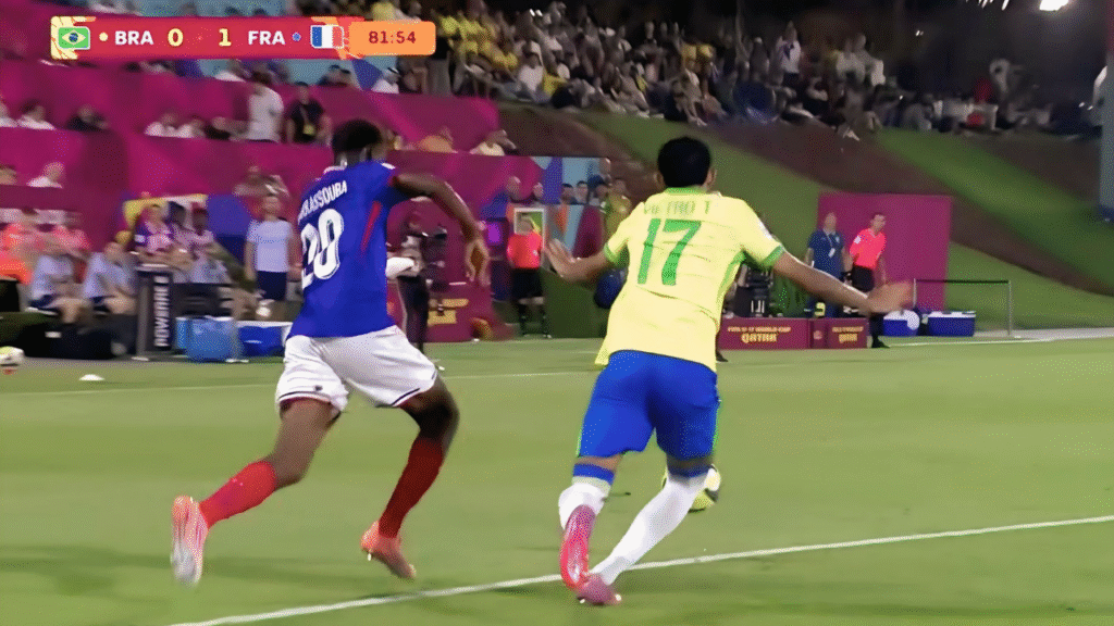 उनकी खेल शैली, गेंद पर नियंत्रण और आक्रामक मूवमेंट ने पूरे आक्रमण को ऊर्जा प्रदान की। मैच के अंतिम क्षणों में उनका एक तेज़ शॉट पोस्ट से टकराया, जो लगभग ब्राज़ील को जीत दिला सकता था।