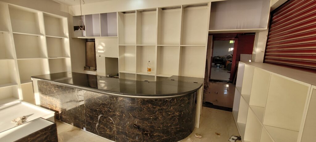 तो चलिए दोस्तों हम आपको बताते हैं, कि इस गारमेंट शॉप में कितना खर्च लगभग आया होगा, और क्या-क्या चीज लगा हुआ है, तो इस फर्नीचर में प्लाईवुड और लेमिनेट का ईउज किया गया है, जो फिनिशिंग लेमिनेट का किया गया है, इसमें और काउंटर के ऊपरी साइड में मार्बल दिया गया है, इस गारमेंट शॉप के अंदर एक काउंटर जो कैश काउंटर है, और उसके बाद बैठने के लिए बेड जैसा लोबेट जो बना हुआ है, वह इसमें तीन पीस बना हुआ है, इसका साइज है, 5 फीट बाय 6 फीट का और 4 बैठने का डेक्स जिसको आप लोग टूल भी बोल सकते हैं, इस शॉप का लंबाई चौड़ाई है, 25 फीट बाय 20 फीट का यह गारमेंट शॉप है, इसमें यह फर्नीचर बना हुआ है, जो पिलर पार्टीशन भी किया गया है, जो दिखने में थोड़ा खूबसूरत लगता है|